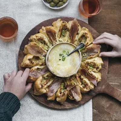 Tarte soleil au mont d’or et quart de jambon tranché Aoste