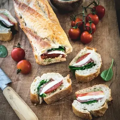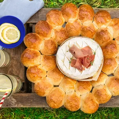 Brioche fourrée autour d’un fromage rôti et jambon cru