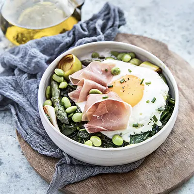 Salade aux couleurs de l’été au jambon cru Aoste & son sorbet Gaspacho