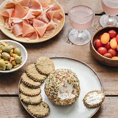 Cheese ball à la ciboulette, noix et jambon cru « les fines et fondantes » Aoste