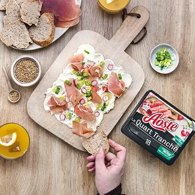 Board Apéro, fromage frais et quart de jambon cru Aoste