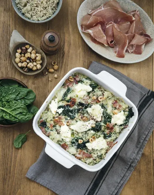 Gratin de quinoa, noisettes, et jambon cru Aoste « les fines et fondantes »