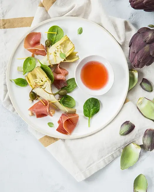 Salade d'artichauts marinés et jambon de Serrano dégraissé Aoste