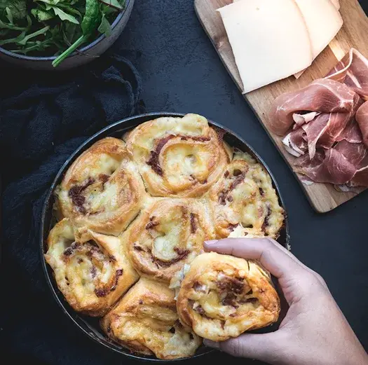 Whoopies, fromage-basilic-tomates et jambon cru Aoste